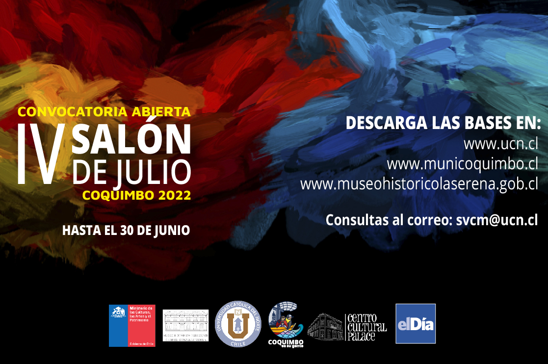 Creadores y artistas visuales de todo el país podrán postular hasta el 30 junio de 2022 a la 4° Versión de «Salón de Julio», una muestra que reunirá creaciones inéditas y que, después de un proceso de selección, serán exhibidas en centros artísticos y culturales de las comunas de Coquimbo y La Serena.