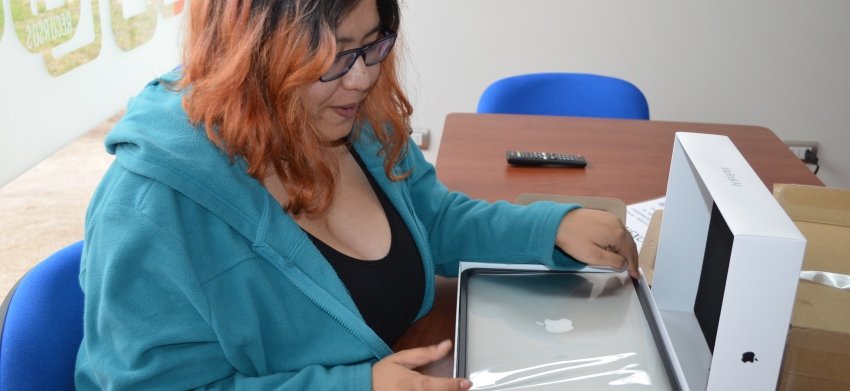 Mónica Palma, estudiante de tercer año de Ingeniería Civil en Computación e Informática, fue una de las ganadoras del sorteo de dos MacBook Air que realizó la Universidad Católica del Norte, tanto en Antofagasta y como en Coquimbo, en el marco del proyecto Global University Entrepreneurial Spirit Students’ Survey (GUESSS).