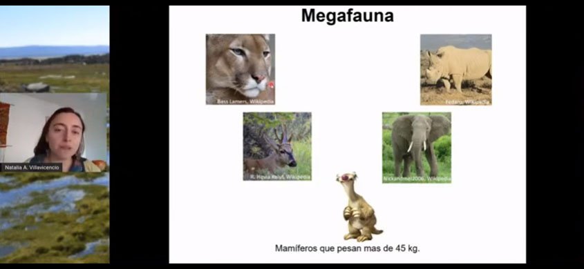 En este contexto, la Dra. Villavicencio se refirió a la definición operacional. “Uno se refiere con Megafauna a cualquier mamífero, en este caso terrestre, que pesa más de 45 kilos. En este contexto, resaltó que son Megafauna en Chile, el puma y el huemul, y los más típicos son el rinoceronte o el elefante en África y, de la última Era de Hielo, el perezoso”. Destacó además que la Extinción del Cuaternario Tardío fue selectiva, es decir, hacia los animales de mayor tamaño, resaltando que en América del Sur todos los animales grandes se extinguieron y es muy poca la variedad animal sobre 45 kilos que queda presente”.