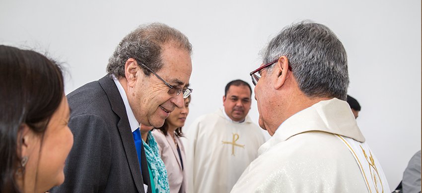 En un celebración llena de simbolismo y solemnidad, las máximas autoridades de nuestra Universidad asistieron a la ceremonia de bendición de la nueva Capilla San Alberto Hurtado del Campus Guayacán, en Coquimbo. La actividad, que fue presidida por el Gran Canciller de la UCN y Arzobispo de Antofagasta, Monseñor Pablo Lizama, contó con la participación del Rector Jorge Tabilo; del Arzobispo de La Serena, Monseñor René Rebolledo; y del Obispo Emérito Monseñor Manuel Donoso; además de numeroso público.