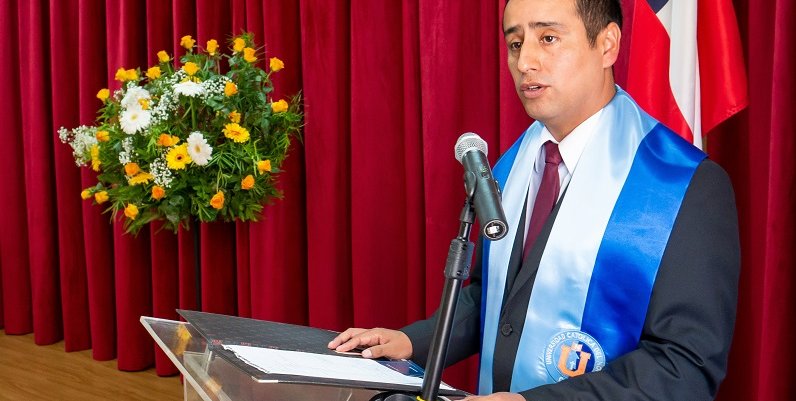 En nombre de la generación de titulados 2019 del Departamento de Teología, entregó un mensaje de despedida el Sr. Camilo Cortés Cruz.